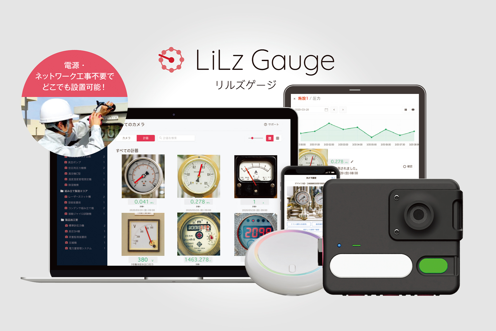 LiLz Gaugeがメーターを自動読取り、LiLz Guardが「いつもと違う」を数値で見える化します。